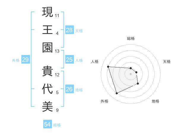 現王園 貴代美さんを姓名の画数から五運を鑑定