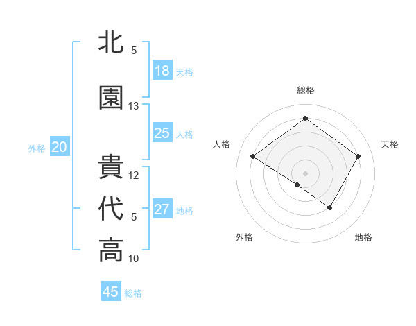 北園 貴代高さんを姓名の画数から五運を鑑定