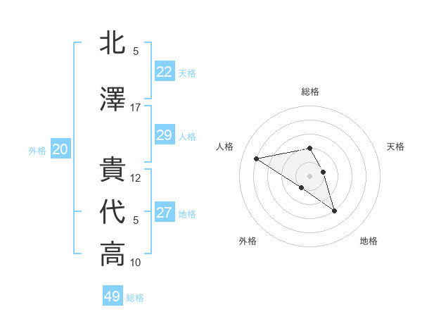 北澤 貴代高さんの総格は49画の2点!
