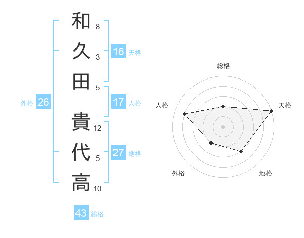 和久田 貴代高さんを姓名の画数から五運を鑑定