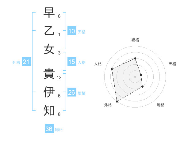 早乙女 貴伊知さんの地格は26画の2点!