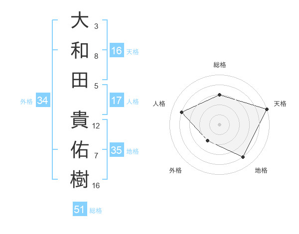大和田 貴佑樹さんの総格は51画の3点!