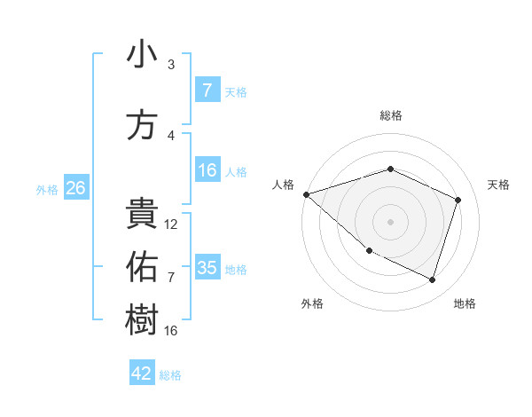 小方 貴佑樹さんを姓名の画数から五運を鑑定