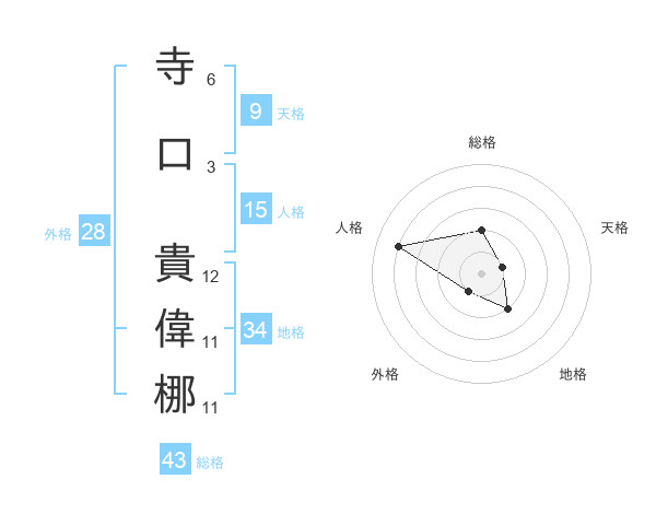 寺口 貴偉梛さんの総格は43画の2点!