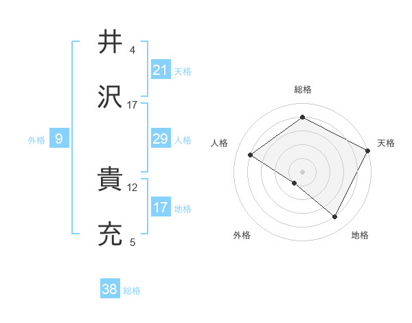井沢 貴充さんを姓名の画数から五運を鑑定