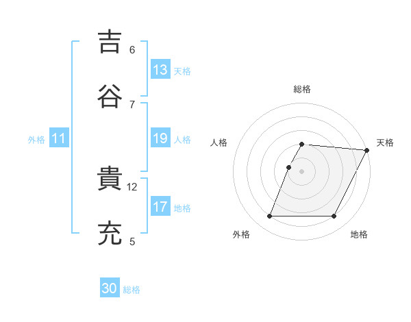 吉谷 貴充さんの天格は13画の5点!