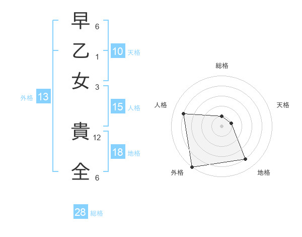 早乙女 貴全さんを姓名の画数から五運を鑑定