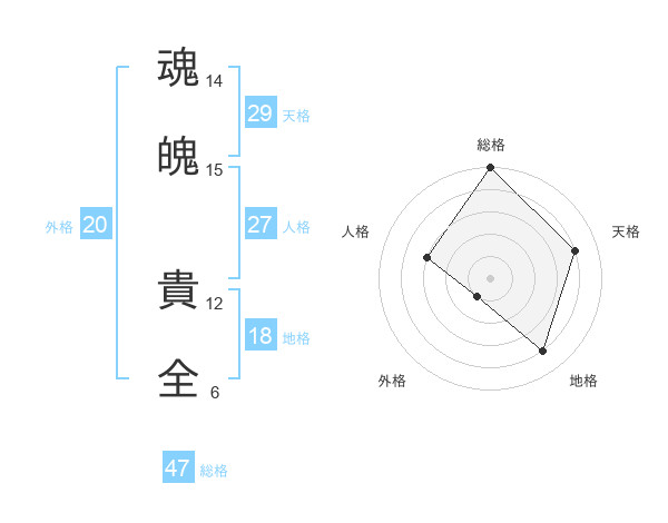 魂魄 貴全さんの総格は47画の5点!