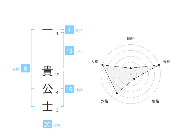 一 貴公士さんの総格は20画の1点!