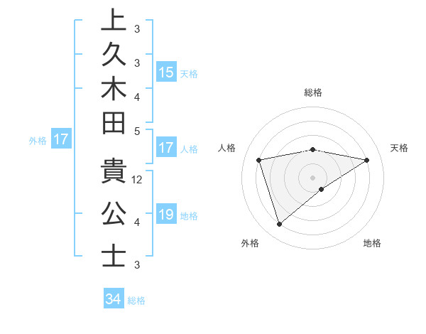 上久木田 貴公士さんを姓名の画数から五運を鑑定