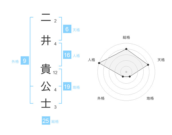 二井 貴公士さんの総格は25画の4点!