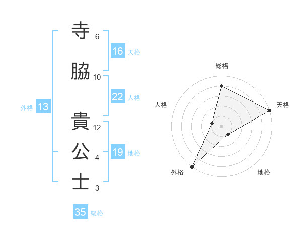 寺脇 貴公士さんを姓名の画数から五運を鑑定