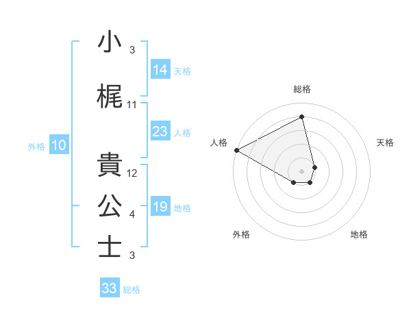 小梶 貴公士さんの総格は33画の4点!
