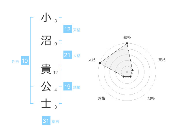 小沼 貴公士さんを姓名の画数から五運を鑑定