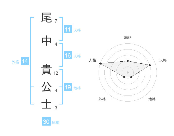 尾中 貴公士さんの総格は30画の2点!