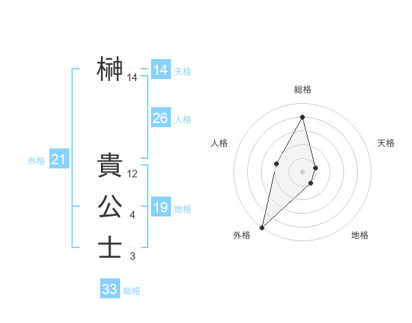 榊 貴公士さんの総格は33画の4点!