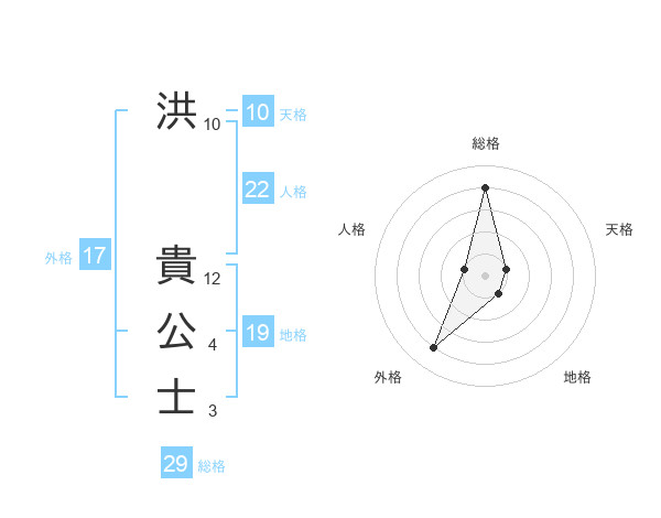 洪 貴公士さんを姓名の画数から五運を鑑定