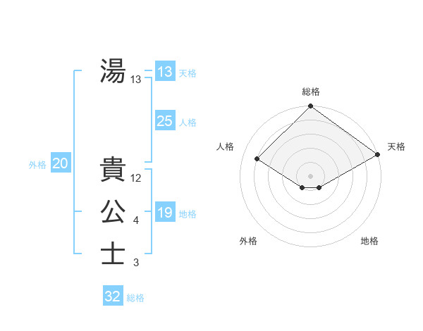 湯 貴公士さんを姓名の画数から五運を鑑定