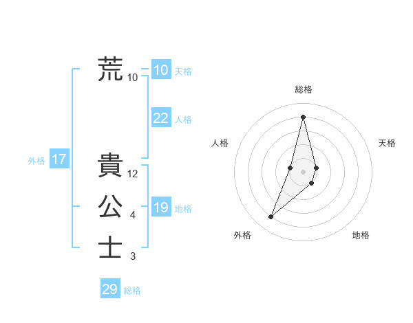 荒 貴公士さんの総格は29画の4点!