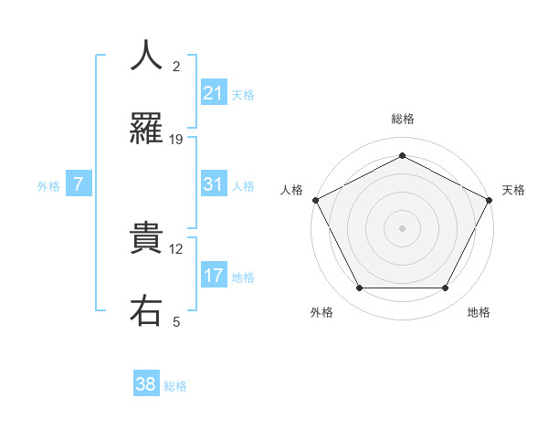 人羅 貴右さんの総格は38画の4点!