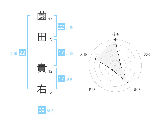 薗田 貴右さんの総格は39画の5点!