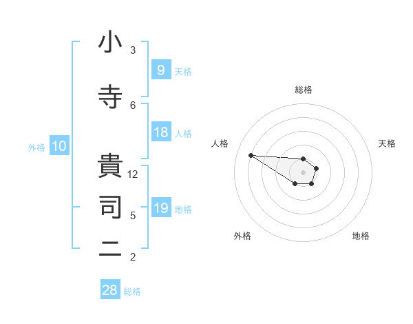 小寺 貴司ニさんを姓名の画数から五運を鑑定