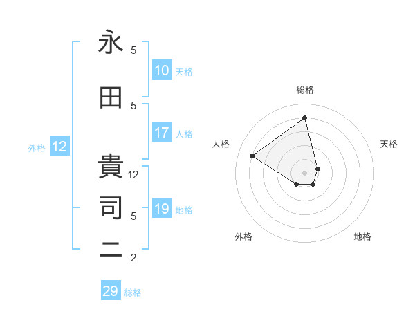 永田 貴司ニさんを姓名の画数から五運を鑑定
