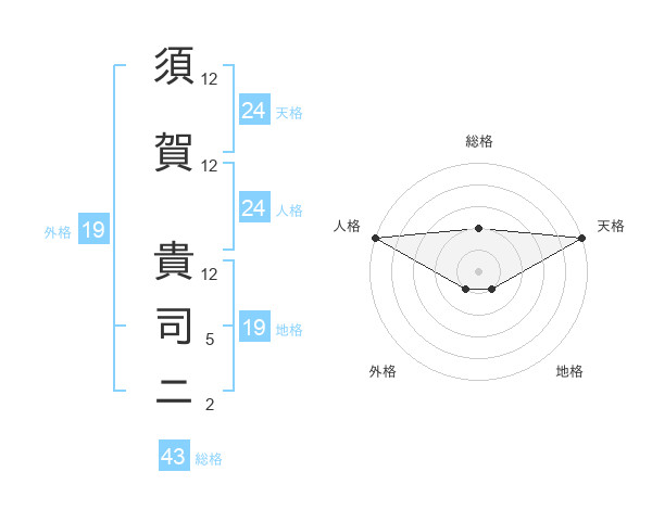 須賀 貴司ニさんの天格は24画の5点