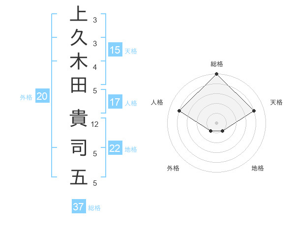 上久木田 貴司五さんを姓名の画数から五運を鑑定