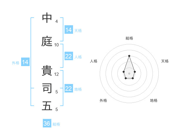 中庭 貴司五さんを姓名の画数から五運を鑑定