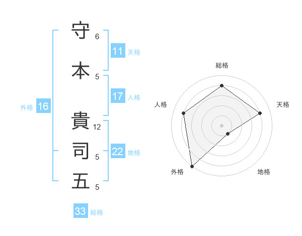 守本 貴司五さんを姓名の画数から五運を鑑定