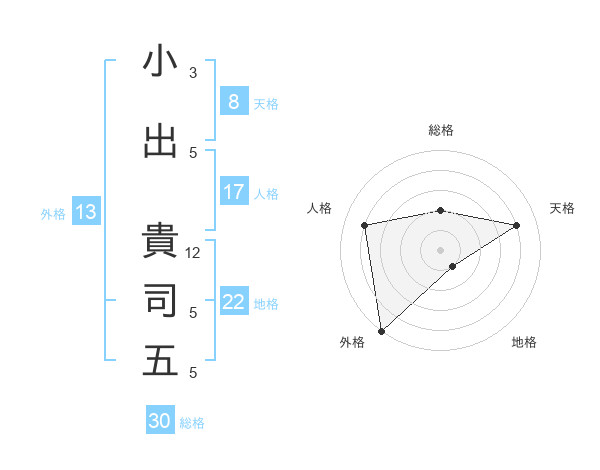 小出 貴司五さんの外格は13画の5点!