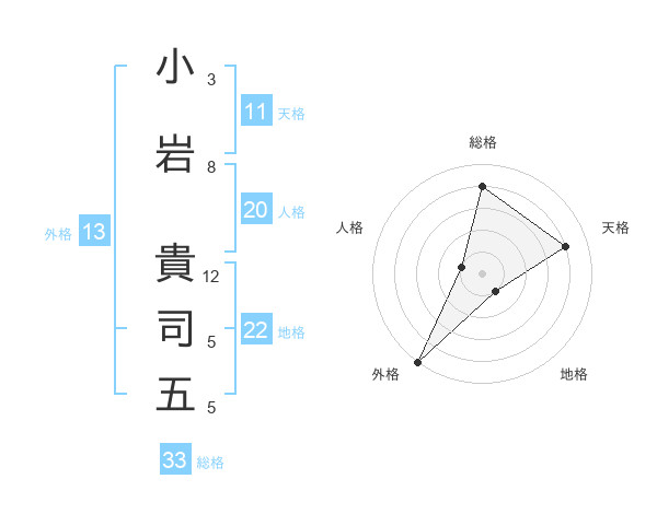 小岩 貴司五さんを姓名の画数から五運を鑑定