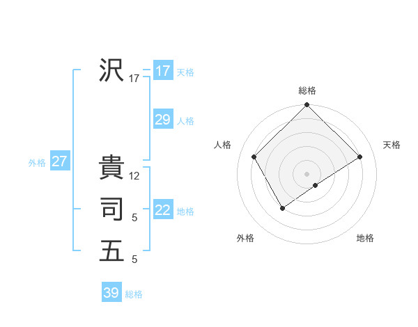 沢 貴司五さんの総格は39画の5点!