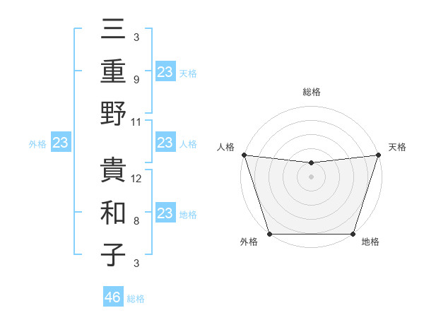 三重野 貴和子さんを姓名の画数から五運を鑑定