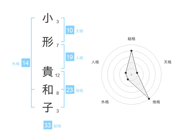 小形 貴和子さんを姓名の画数から五運を鑑定