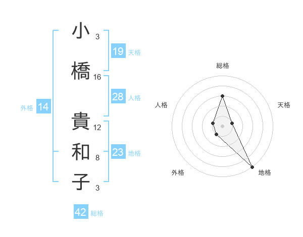 小橋 貴和子さんの天格は19画の1点!