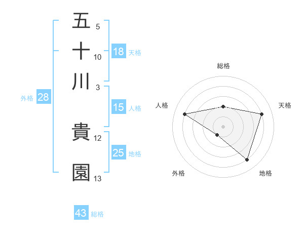 五十川 貴園さんを姓名の画数から五運を鑑定
