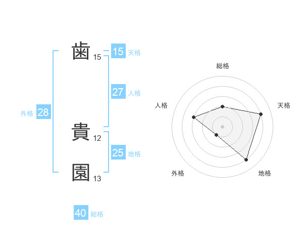歯 貴園さんの総格は40画の2点!