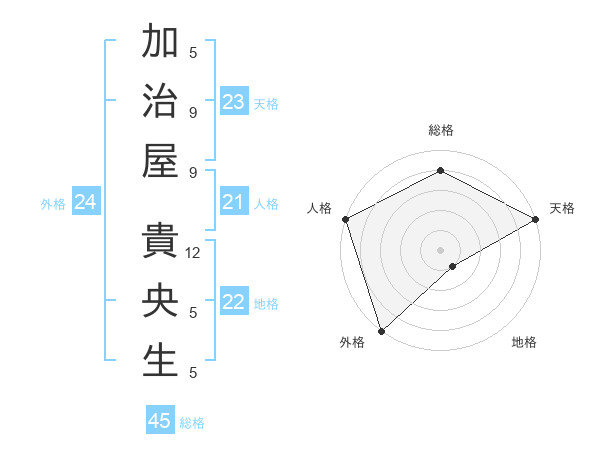 加治屋 貴央生さんを姓名の画数から五運を鑑定