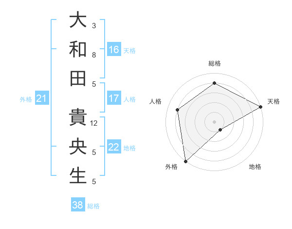 大和田 貴央生さんを姓名の画数から五運を鑑定