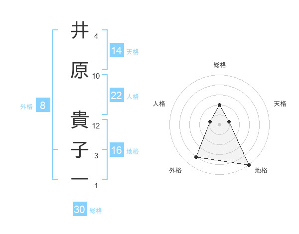 井原 貴子一さんを姓名の画数から五運を鑑定