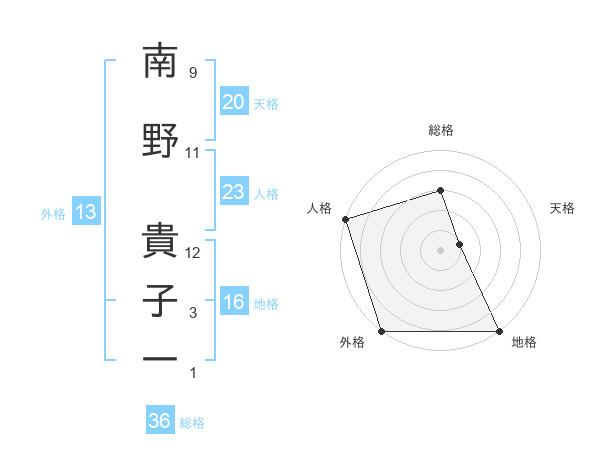 南野 貴子一さんを姓名の画数から五運を鑑定