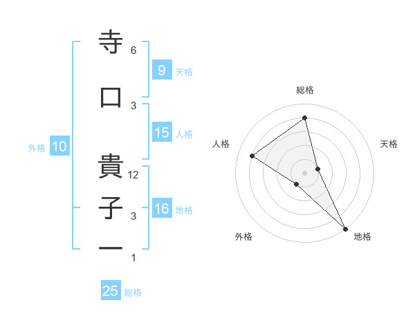 寺口 貴子一さんを姓名の画数から五運を鑑定