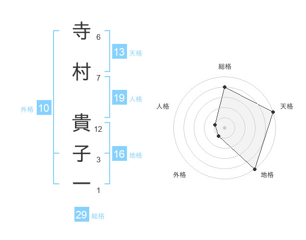 寺村 貴子一さんの総格は29画の4点!