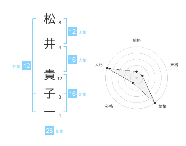 松井 貴子一さんを姓名の画数から五運を鑑定