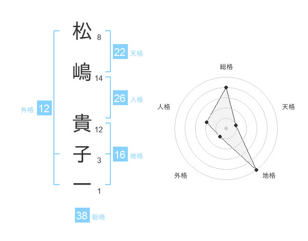 松嶋 貴子一さんを姓名の画数から五運を鑑定