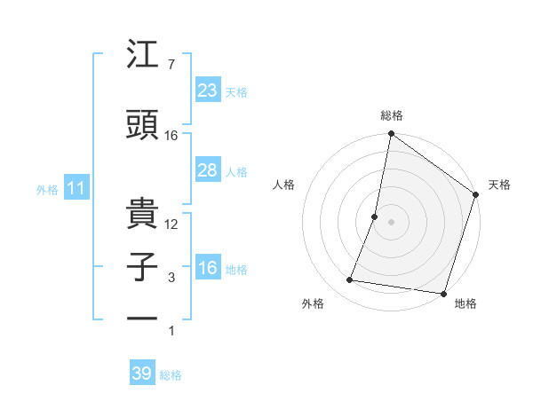 江頭 貴子一さんの天格は23画の5点!