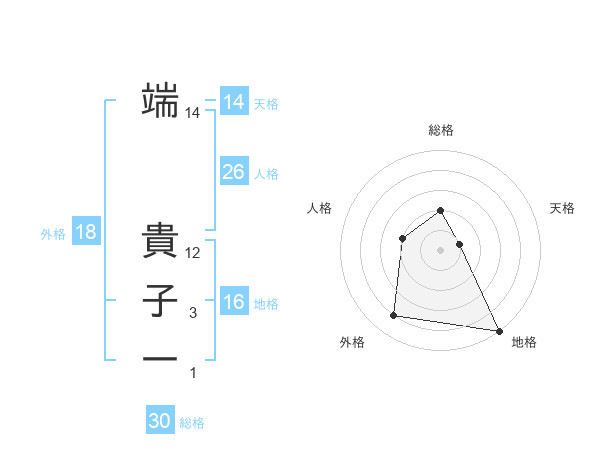 端 貴子一さんの総格は30画の2点!