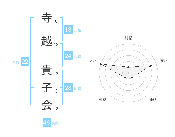 寺越 貴子会さんを姓名の画数から五運を鑑定